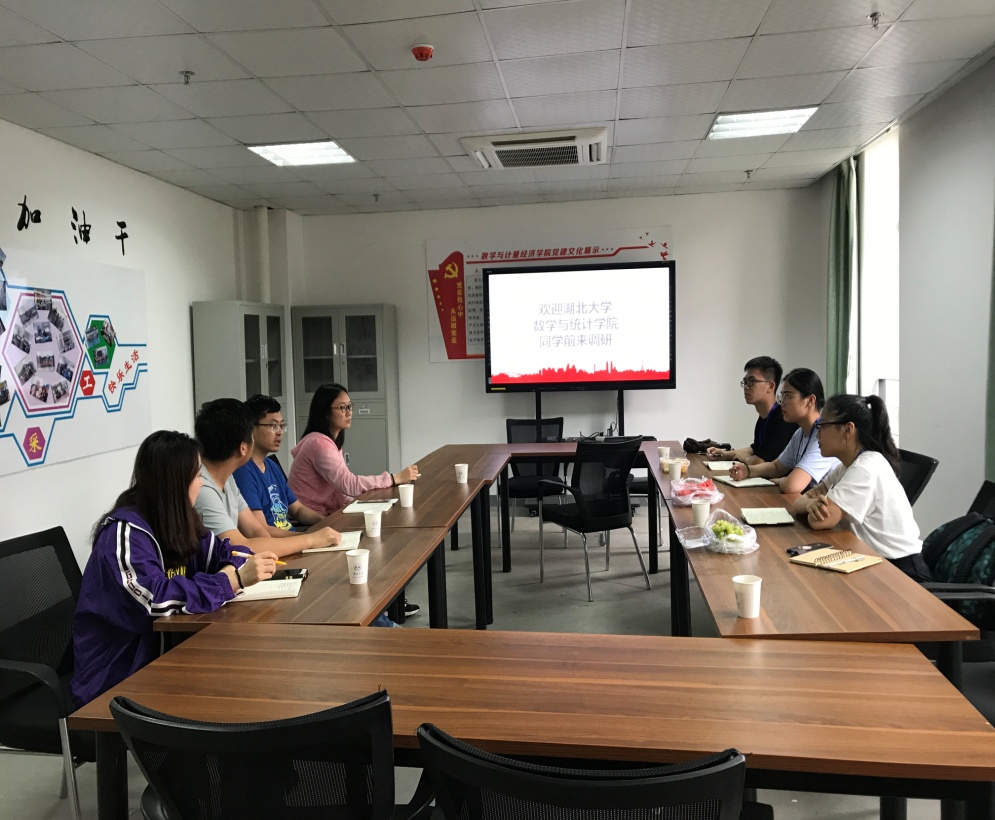 会议中,两院主要就各院的学生组织结构、调研主题、学生工作内容进行交流。在交流中,湖南大学数学与计量经济学院团委书记及15,18级辅导员韩笑天老师介绍,他院对于学生的学习情况抓的非常紧,不仅对大一大二学生有晚自习的一个强制要求,在各种专业课,竞赛上的要求也很严格。对于本科生的学习情况学院也有一个“研博帮扶计划”,对于一些在学习上存在疑难的本科生,学院会安排研究生博士生进行一个定点帮扶的安排。两院就以学习氛围,学分为起始,对两院活动的承办情况,暑期社会实践,评优评先等的一系列问题进行了探讨。